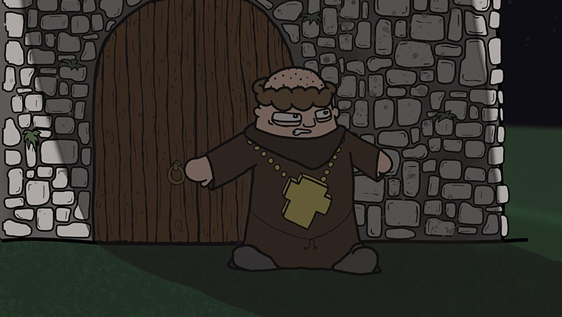 A fearful monk is stalked by a shadowy horned figure whose mysterious identity leads the protagonist into overcoming his fears.
